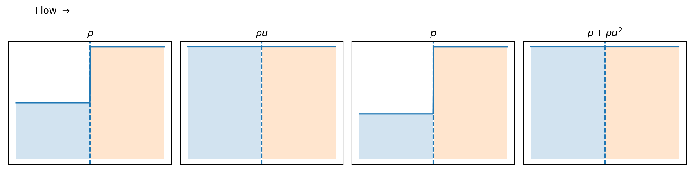 \[ \rho_1 u_1^2 + p_1 = \rho_2 u_2^2 + p_2 \]
