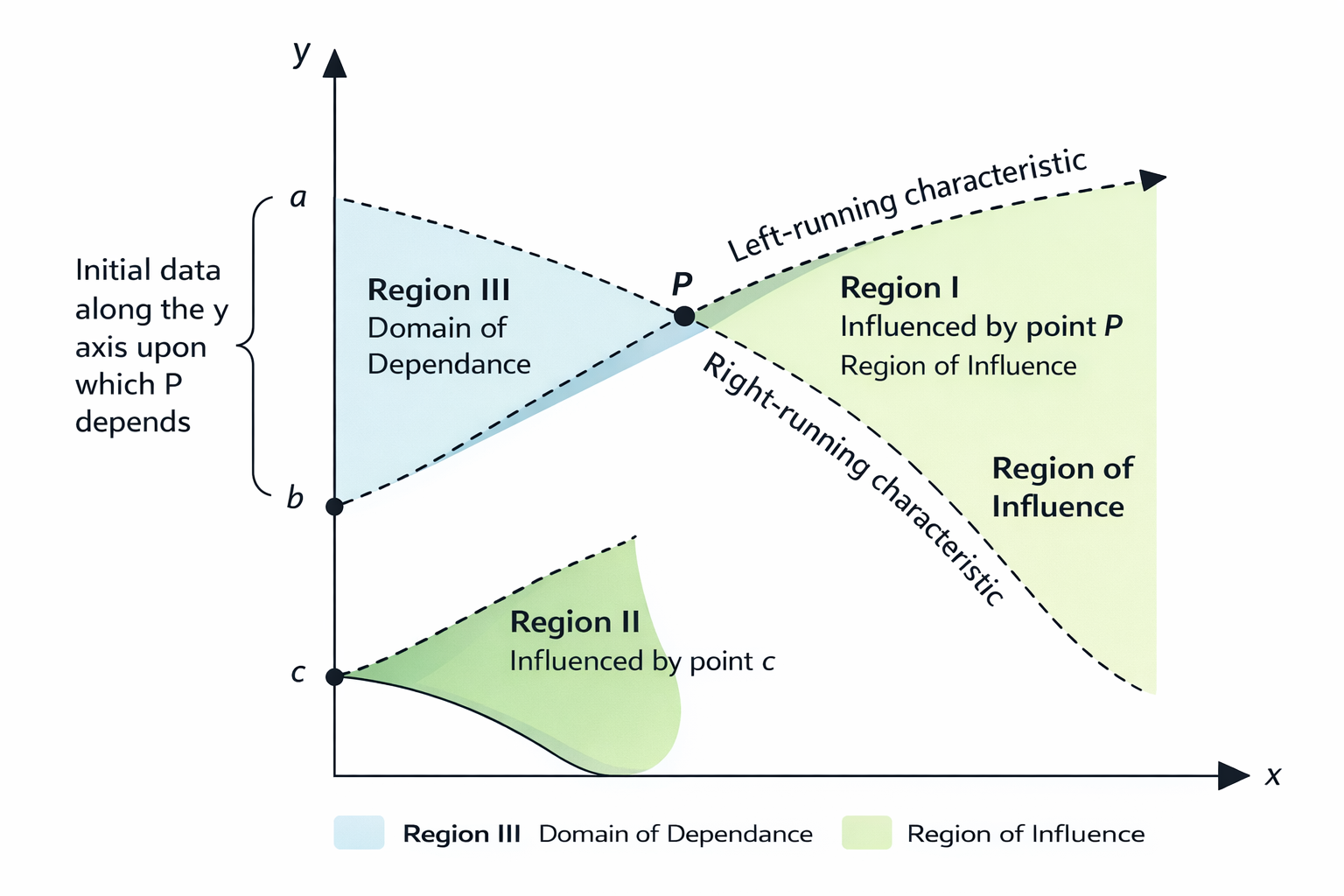 👉 区域 III 被称为点 \(P\) 的依赖域(Domain of Dependence)